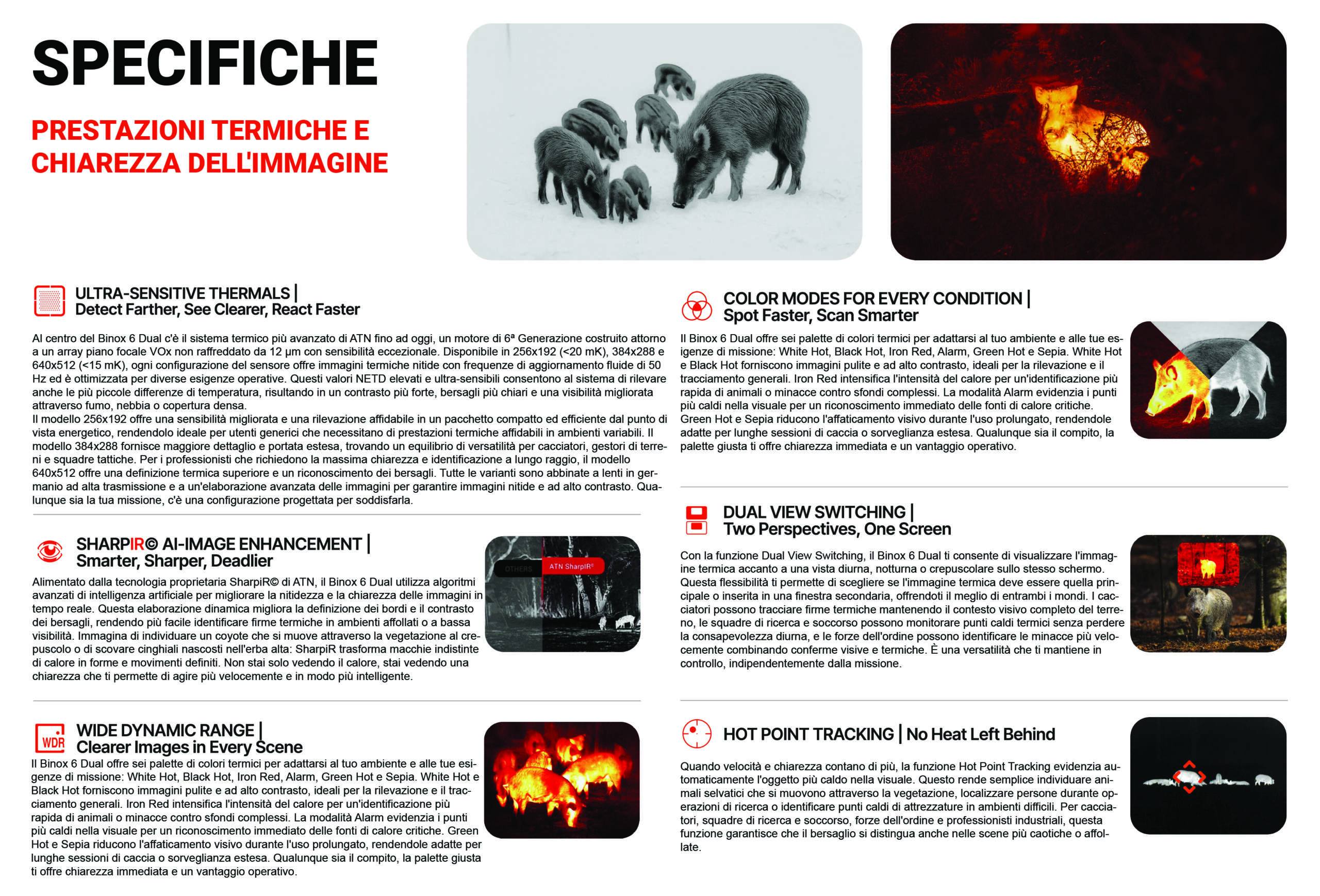 Quando ogni secondo conta e ogni ombra racconta una storia, il Binox 6 Dual mette il mondo invisibile a portata di mano e ti dà la visione per andare avanti con assoluta sicurezza.